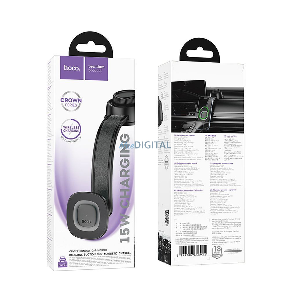 Az induktív töltéssel ellátott Hoco HW31 autós tartó praktikus megoldás azoknak a járművezetőknek, akiknek fontos a kényelem és a rend az autóban. Lehetővé teszi, hogy egyszerre rögzítse telefonját és vezeték nélkül töltse akár 15 W-os teljesítményen - kábelek és zavaró tényezők nélkül.