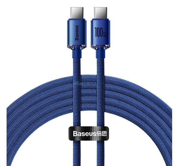 BASEUS CRYSTAL SHINE adatkábel (Type-C - Type-C, 100W, PD gyorstöltő, 120cm, cipőfűző) SÖTÉTKÉK