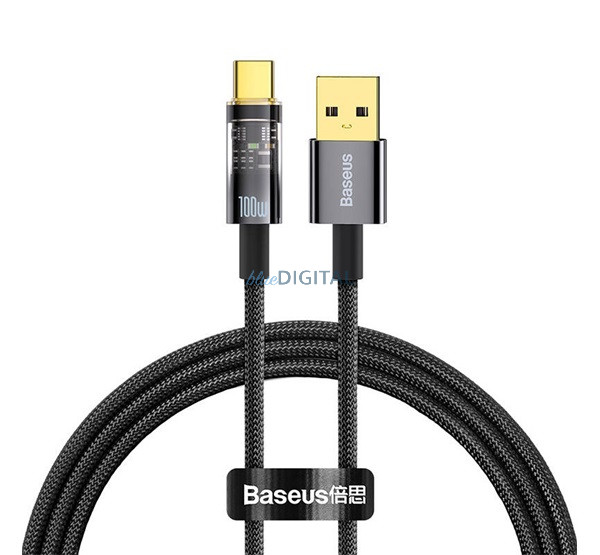 BASEUS EXPLORER adatkábel (USB - Type-C, 100W, gyorstöltő, 100cm, cipőfűző) FEKETE