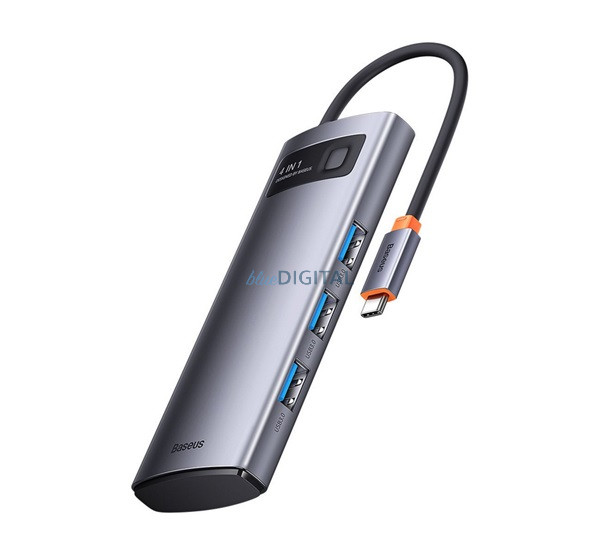 BASEUS Type-C HUB 4in1 (aktív, elosztó, 4 USB aljzat, gyorstöltő) SÖTÉTSZÜRKE