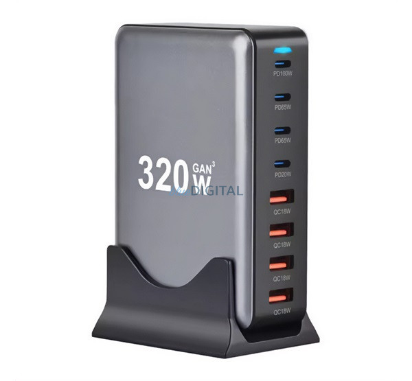 BLACKBIRD BH1673 hálózati töltő 8 Type-C aljzat (320W, GaN, QC gyorstöltő) FEKETE