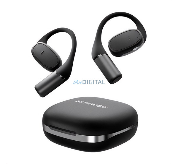 BLITZWOLF BW-V49 bluetooth fülhallgató SZTEREO (v5.3, TWS, zajszűrő, fülre akasztható, mikrofon, IP54 + töltőtok) FEKETE