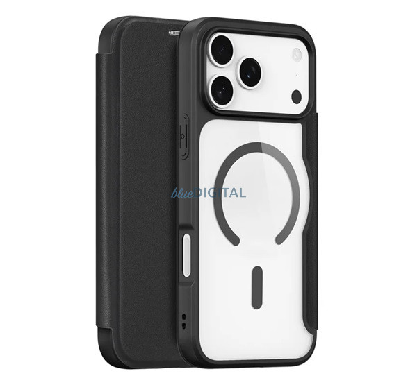 DUX DUCIS SKIN X PRO tok álló, bőr hatású (FLIP, oldalra nyíló, RFID, MagSafe) FEKETE Apple iPhone 17 Pro Max
