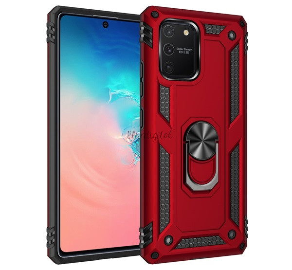 Defender műanyag telefonvédő (közepesen ütésálló, szilikon belső, telefontartó gyűrű, beépített fémlemez) PIROS Samsung Galaxy S10 Lite (SM-G770F)