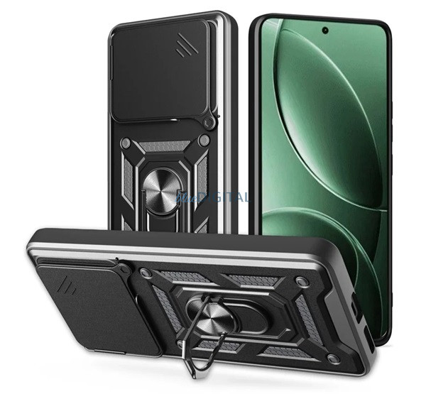 Defender szilikon telefonvédő (ütésállóság, tartógyűrű, kameravédő) FEKETE Xiaomi Poco F7 Pro