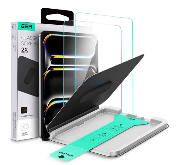 ESR ULTRAFIT képernyővédő üveg 2db (2.5D, 9H + segédkeret) ÁTLÁTSZÓ Apple IPAD Pro 13 (2025), IPAD Pro 13 (2024)