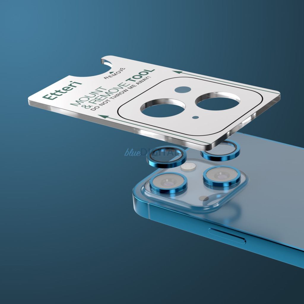 Etteri kamera lencse védő edzett üveg tengerkék szegéllyel iPhone 13/13 mini