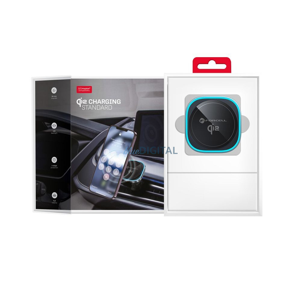 A Forcell F-Grip AirMag egy modern, az új Qi2 szabványon alapuló, gyors vezeték nélküli töltéssel rendelkező autós szellőzőtartó. A MagSafe® kompatibilitásnak, az erős beépített mágneseknek és az akár 15 W-os töltési teljesítménynek köszönhetően egyszerre kínál kényelmet és biztonságot vezetés közben.