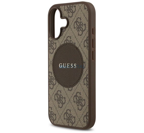 GUESS 4G CIRCLE CLASSIC LOGO szilikon telefonvédő (ütésállóság, textil hátlap, MagSafe) SÖTÉTBARNA Apple iPhone 17
