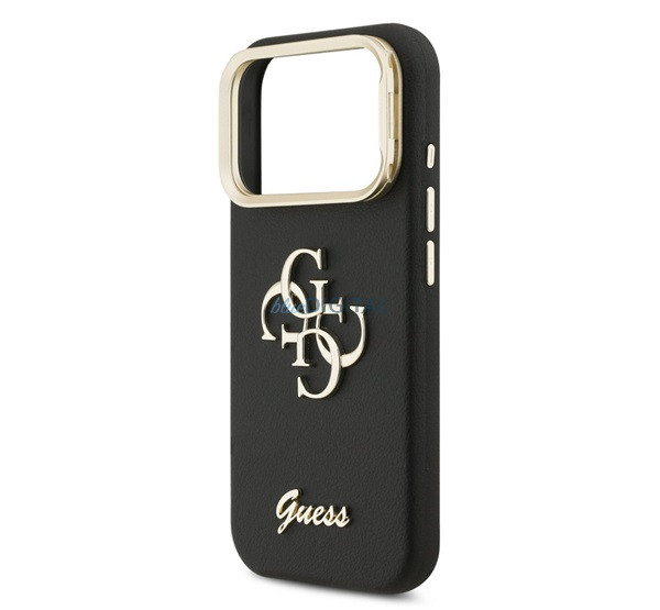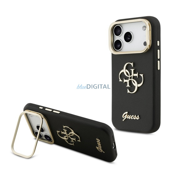 GUESS GRAINED BIG 4G & STAND CAMERA szilikon telefonvédő (műanyag hátlap, ECO bőr hatású hátlap, kitámasztó) FEKETE Apple iPhone 17 Pro Max