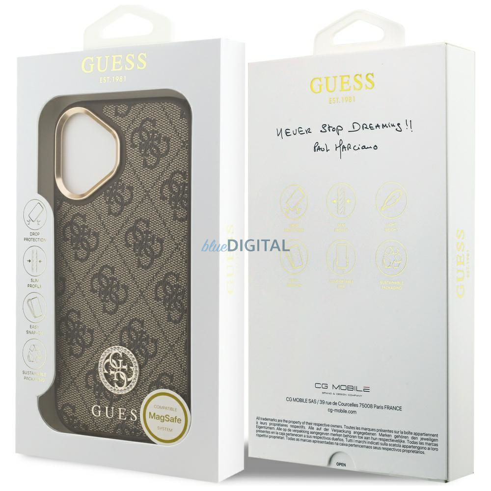 GUESS tok IPHONE 17 kompatibilis MagSafe GUHMP17SP4GRMDEW (PU W / 4G Strass Logo) barna