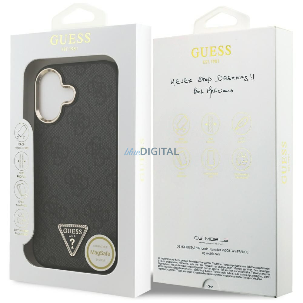 GUESS tok IPHONE 17 kompatibilis MagSafe GUHMP17SP4GTDGMK (4G PU W / háromszög logó) arany fekete