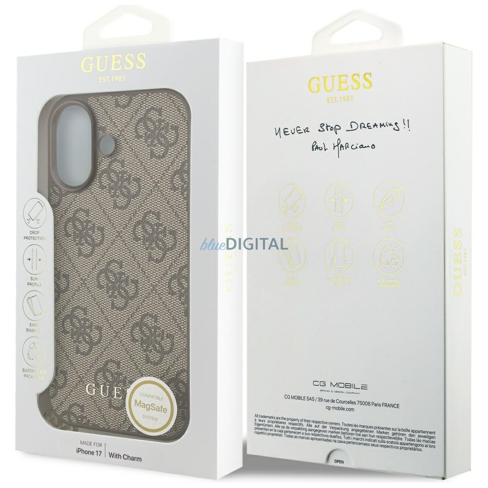 Guess 4G Charms Collection MagSafe tok iPhone 17 barna színűre
