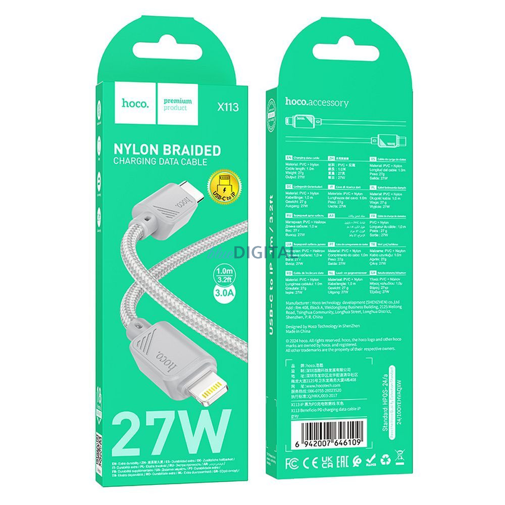 Hoco X113 kábel USB-C - Lightning csatlakozóval. Támogatja a gyors töltést Power Delivery 27 W és az adatátvitelt.