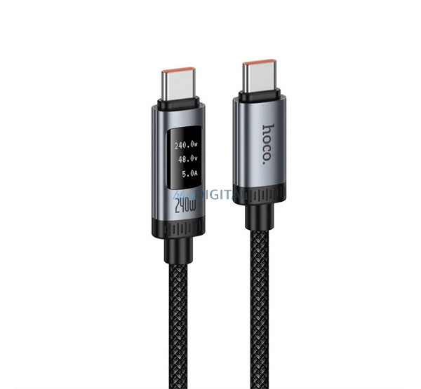 HOCO U148 adatkábel (USB - Type-C, 240W, PD gyorstöltő, LED kijelző, 120cm) FEKETE