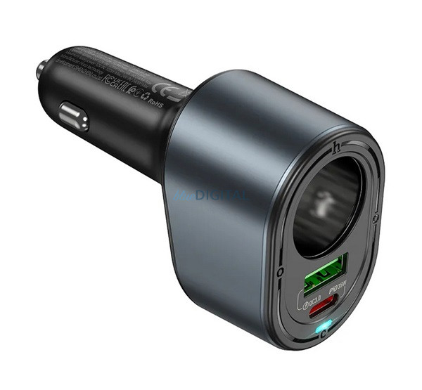 HOCO Z56 szivargyújtó adapter (elosztó, szivargyújtó+1 USB+Type-C aljzat, 35W, PD gyorstöltés) FEKETE
