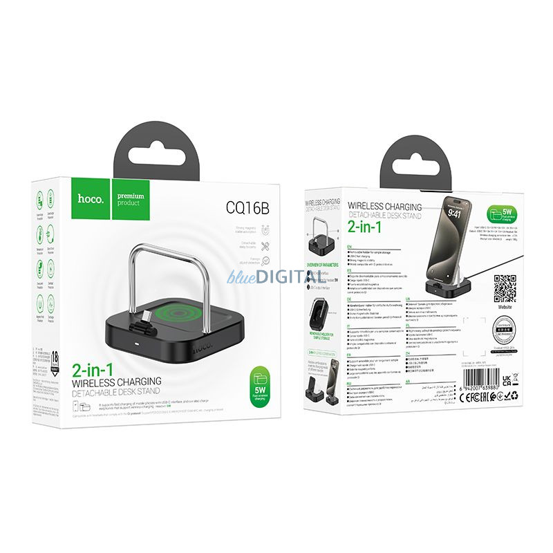HOCO asztali töltő 2in1 C típusú + vezeték nélküli töltés 5W PD QC 3A 30W CQ16B fekete