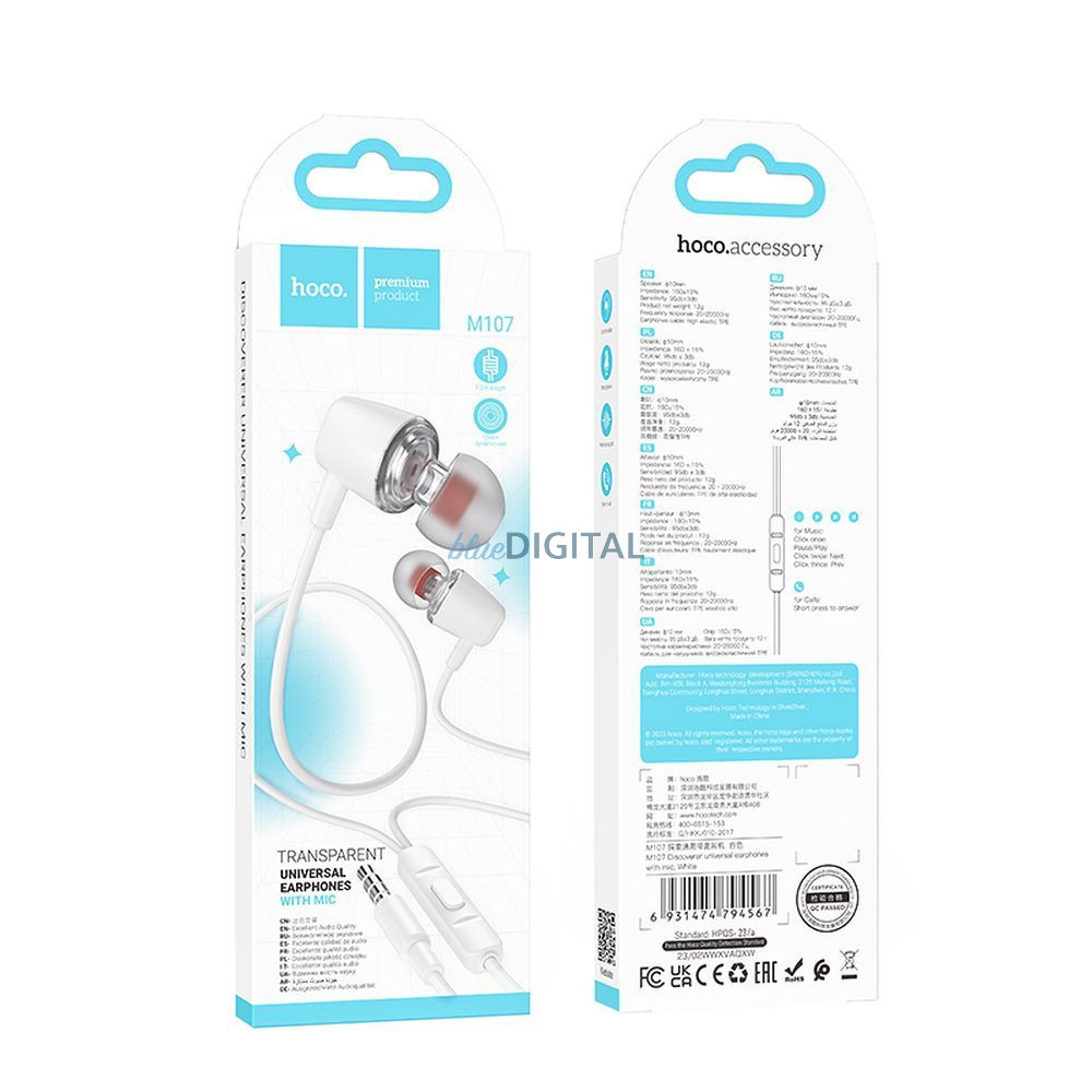 Univerzális Hoco M107 fülhallgató. Tökéletes mindennapi használatra. Lehetővé teszi, hogy bárhol élvezhesse kedvenc zenéjét. Mikrofonnal felszerelt a beszélgetésekhez.