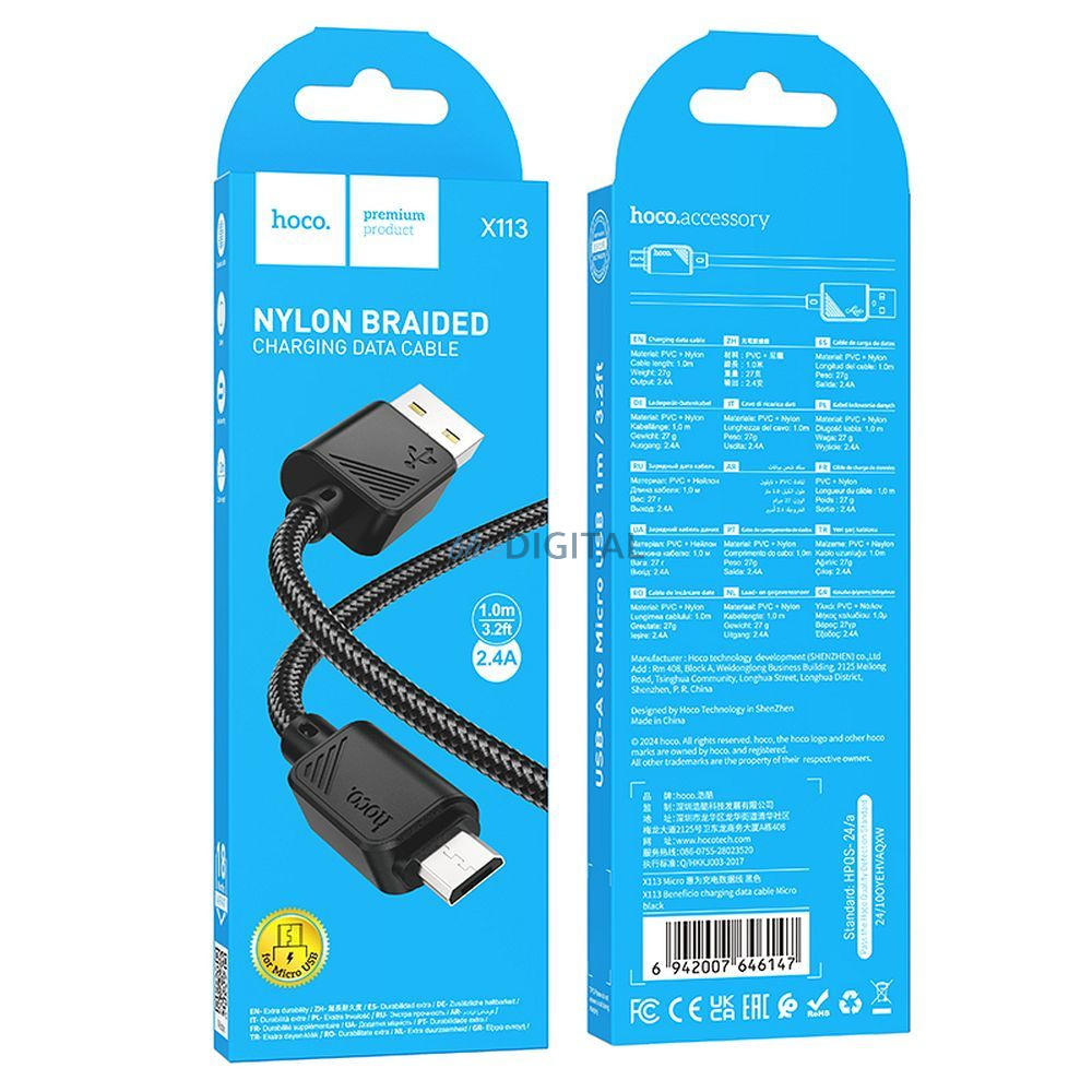 HOCO kábel USB-A - Micro USB 2,4A X113 1 m fekete