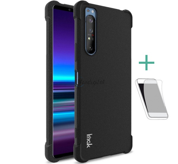 IMAK szilikon telefonvédő (közepesen ütésálló, légpárnás sarok + képernyővédő fólia) FEKETE Sony Xperia 1 II (XQ-AT5)