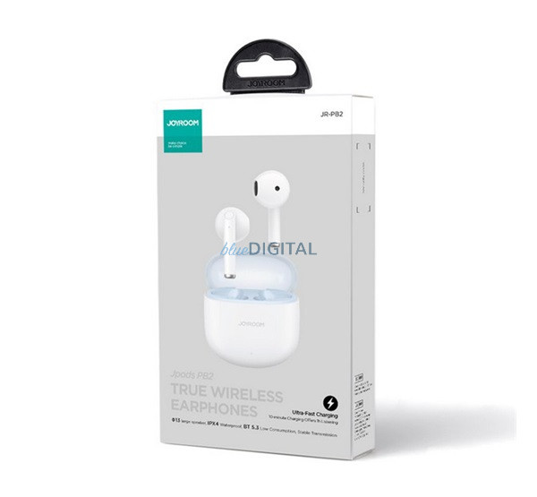 JOYROOM JPODS bluetooth fülhallgató SZTEREO (v5.3, TWS, mikrofon, IPX4, cseppálló + töltőtok) FEHÉR