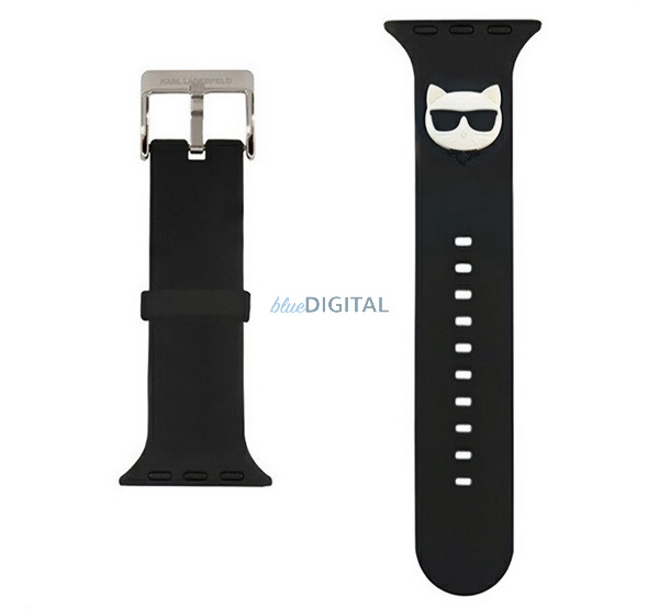 KARL LAGERFELD SILICONE CHOUPETTE HEAD pótszíj (egyedi méret, nagy, szilikon, fém csat) FEKETE Apple Watch Series 5 44mm, Watch Series 4 44mm, Watch Series 3 42mm