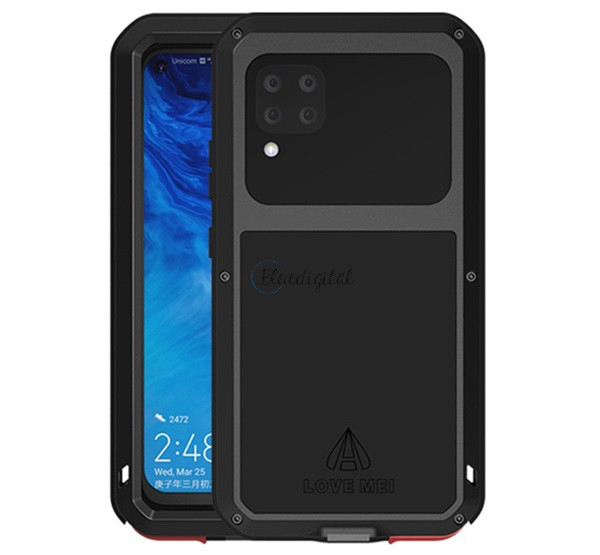 LOVE MEI Powerful defender telefonvédő (fém keret, extrém ütésálló, cseppálló, porálló + Gorilla Glass üveg) FEKETE Huawei P40 Lite 4G / Nova 6 SE