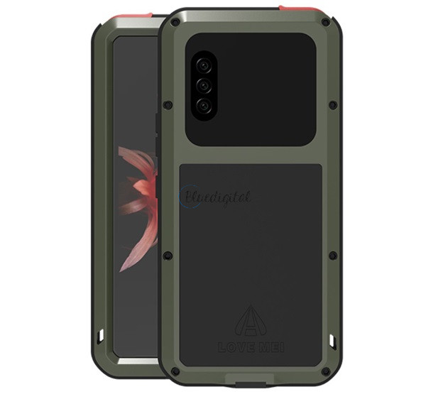LOVE MEI Powerful defender telefonvédő (fém keret, extrém ütésálló, cseppálló, porálló + Gorilla Glass üveg) SÖTÉTZÖLD Sony Xperia 10 II (XQ-AU5)