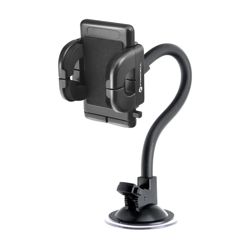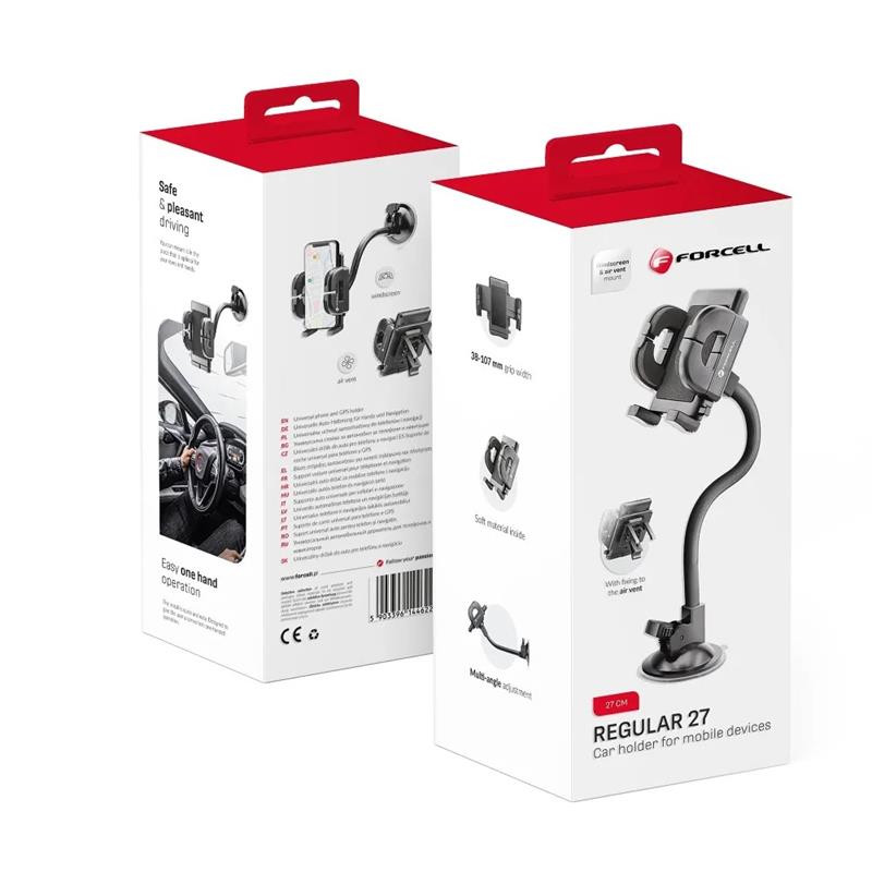 Műszerfalra / szélvédőre / szellőzőnyílásra helyezhető autós tartó, tapadókorongos, fekete, Forcell Regular 27