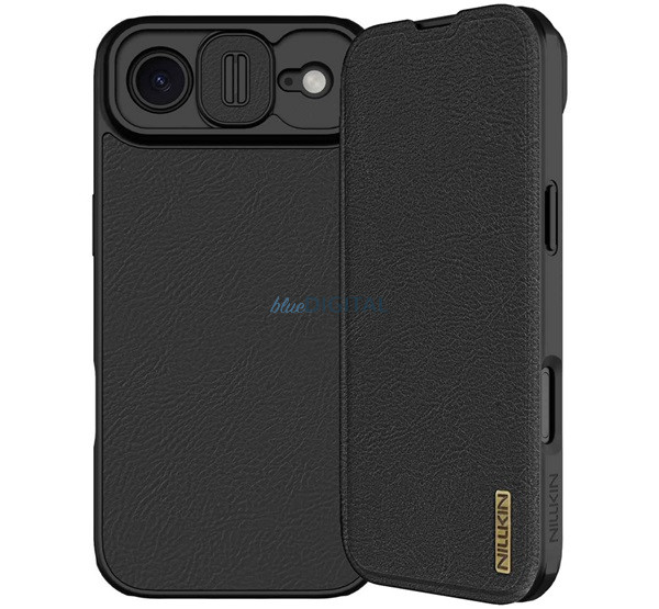 NILLKIN QIN PRO tok álló, bőr hatású (FLIP, oldalra nyíló, kártyazseb, kameravédő) FEKETE Apple iPhone Air