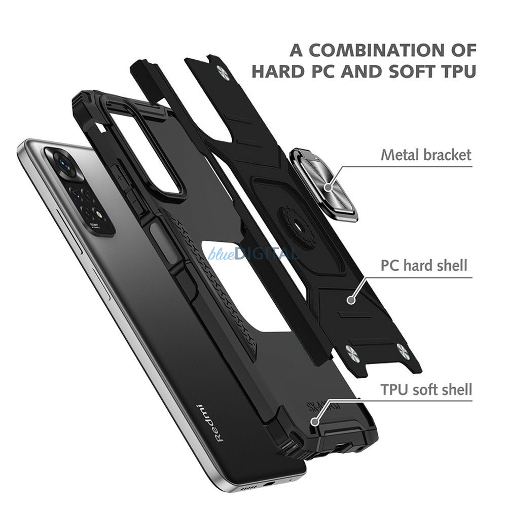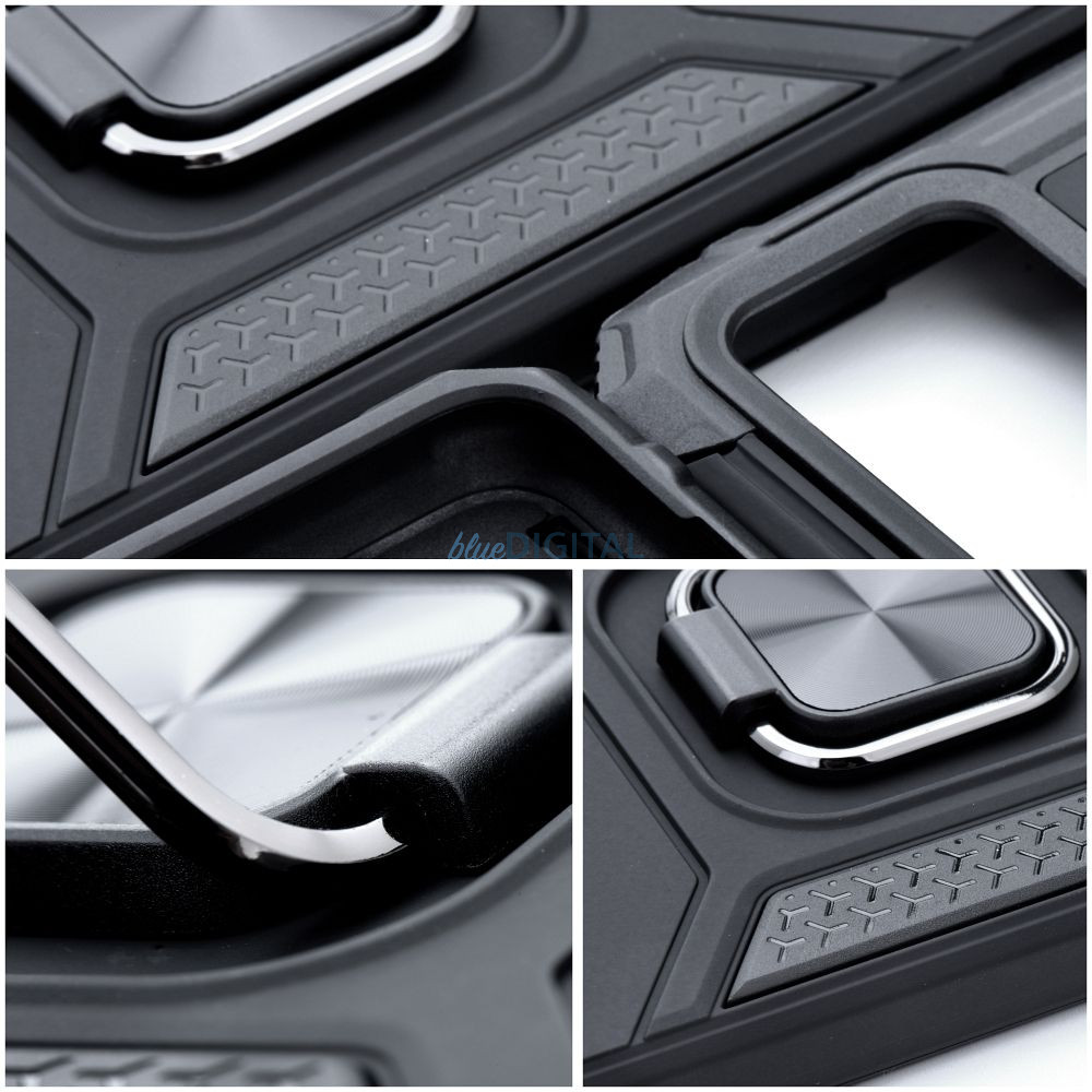 A Nitro tok sötét esztétikában megőrzött páncélozott megjelenése biztosan tetszeni fog a katonai dizájnt kedvelőknek. A tok hátuljába épített mágneses gyűrű megkönnyíti a telefon tartását, és megakadályozza, hogy kicsússzon a kezedből, valamint filmnézés közben állványként is használható. Ez a markolat jól működik a mágneses autós tartókkal.