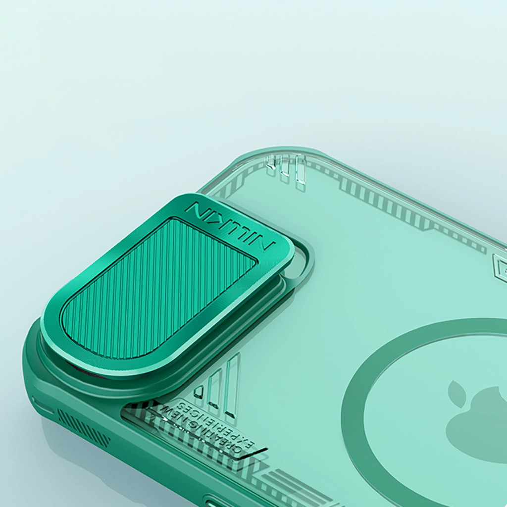 Nillkin Iceblade Prop MagSafe-kompatibilis tok kameralencse védővel és kitámasztóval iPhone 16e - zöld
