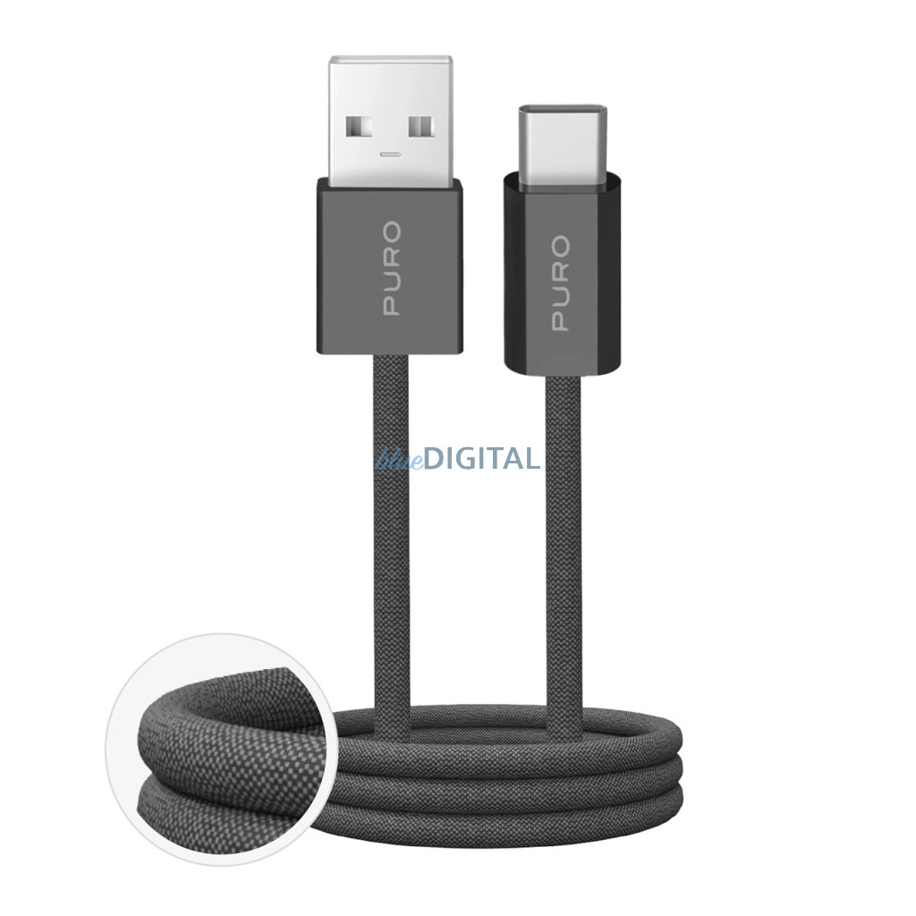 Puro Fabrik 2.0 10W USB-A - USB-C fonott kábel 1,5 m - sötétzöld