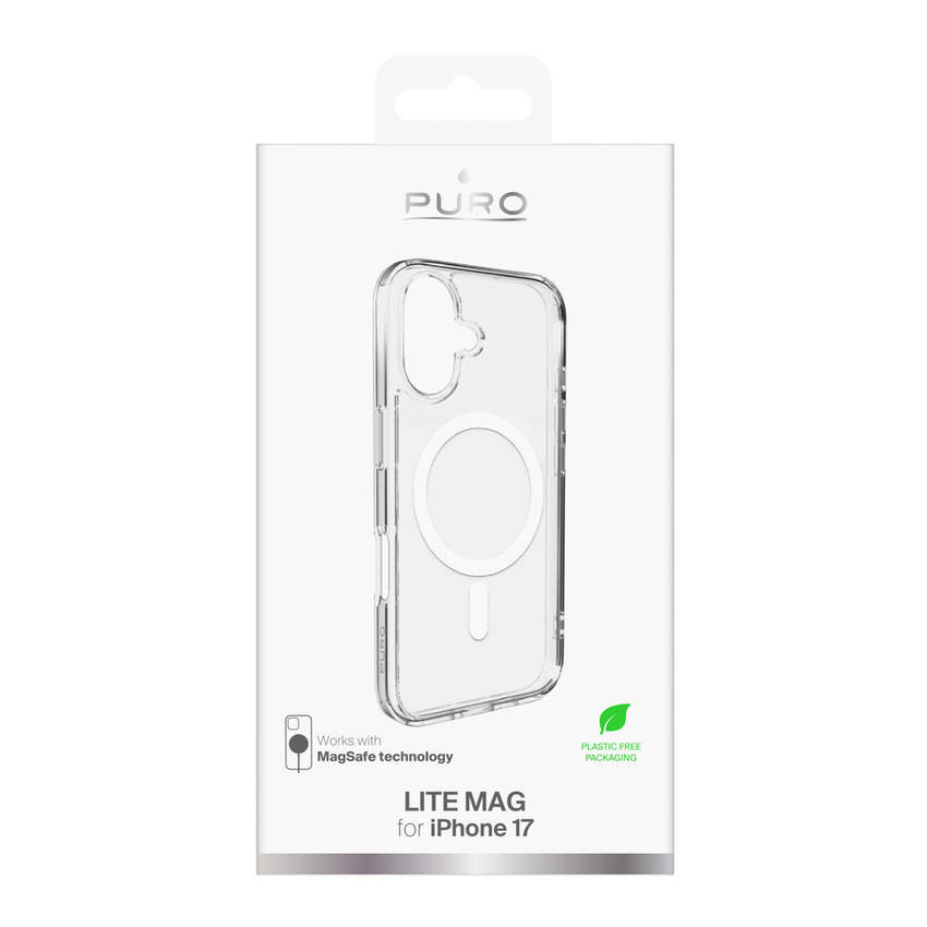 Puro Lite Mag tok kompatibilis a MagSafe iPhone 17 készülékkel - átlátszó fehér gyűrűvel