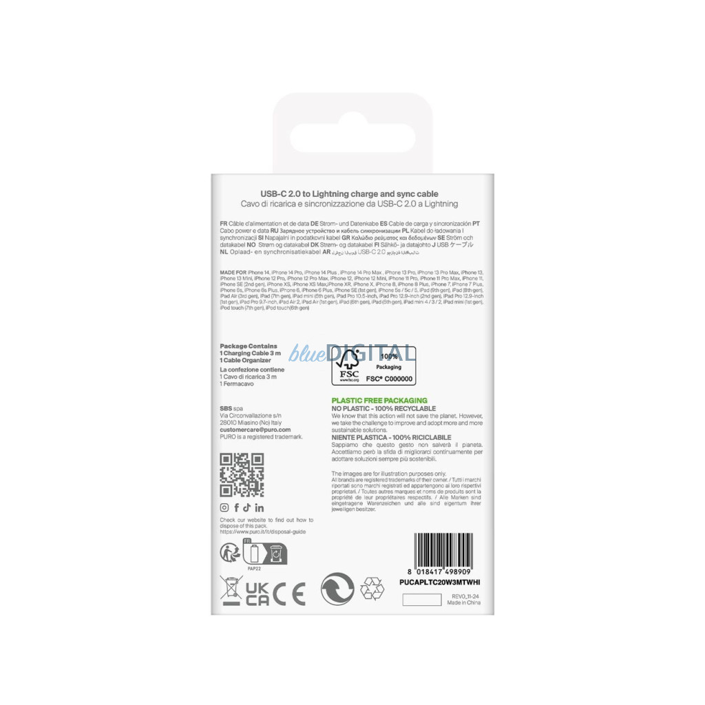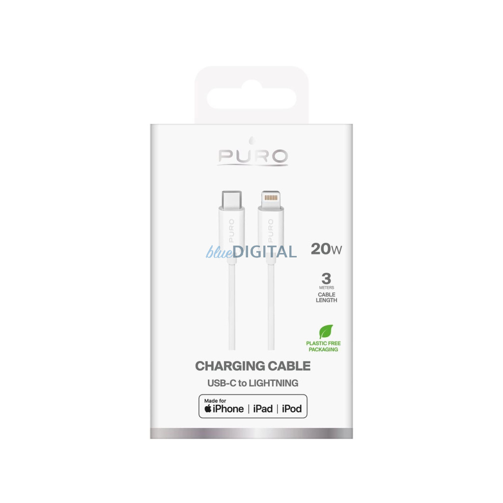 Puro TPE 20W USB-C - Lightning kábel 3m - fehér