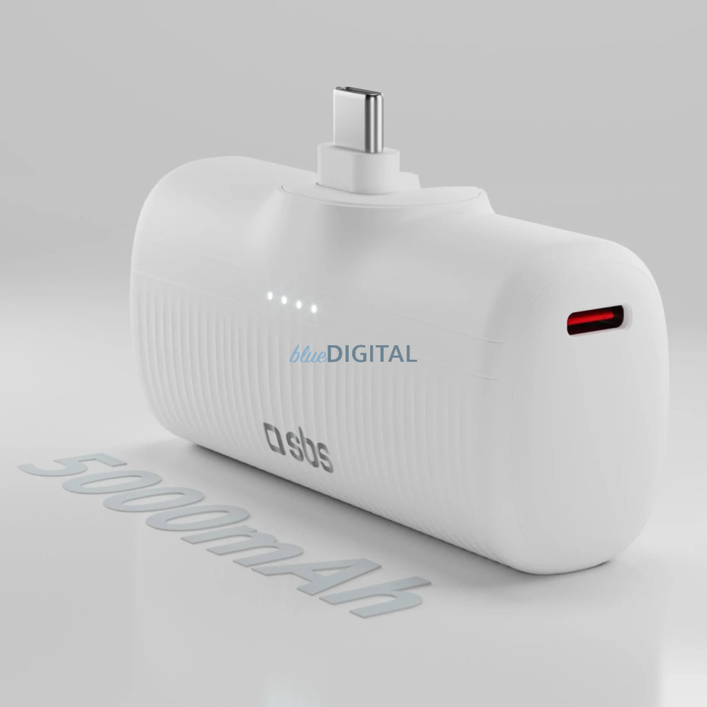 SBS EcoPower 5000 mAh 10W Powerbank beépített USB-C porttal - Fehér színű