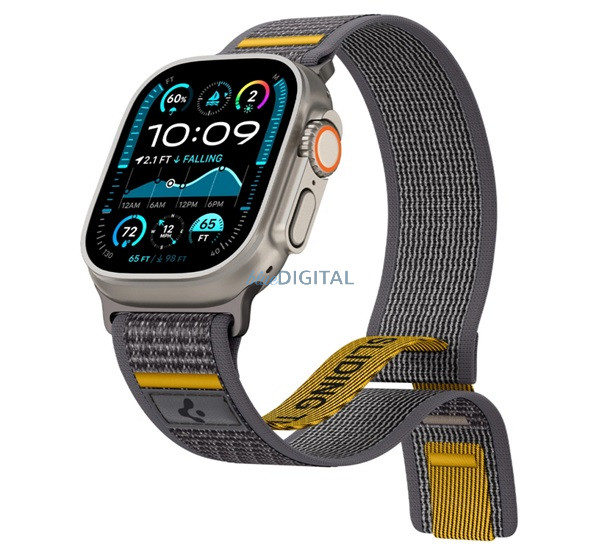 SPIGEN ATHLEX pótszíj (egyedi méret, nagy, nylon, tépőzáras, légáteresztő, SPORT) SÖTÉTSZÜRKE Apple Watch Series 5 44mm, Watch Series 4 44mm, Watch Series 3 42mm