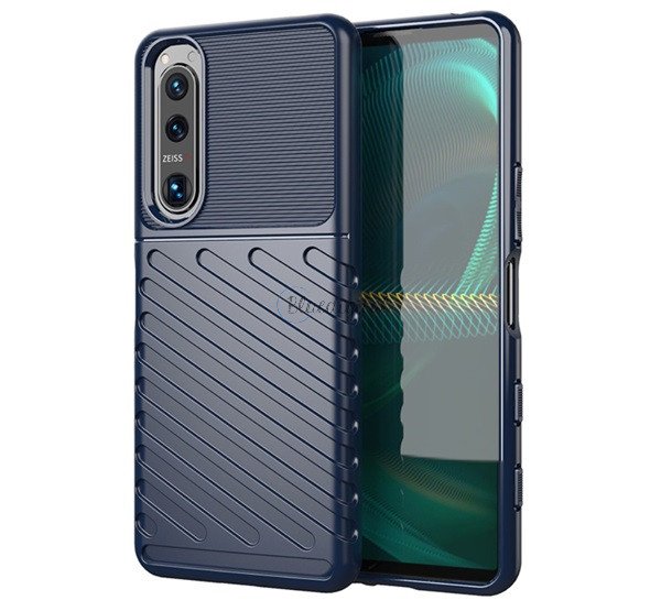 Szilikon telefonvédő (közepesen ütésálló, csíkos, dombor minta) SÖTÉTKÉK Sony Xperia 5 III (XQBQ62)