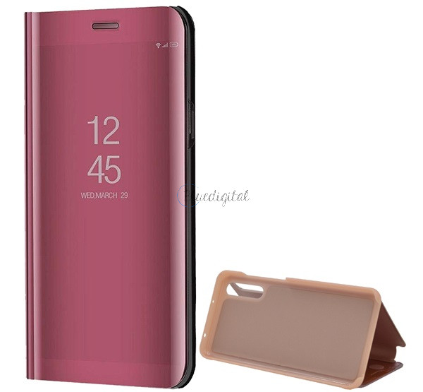 Tok álló (aktív FLIP, oldalra nyíló, asztali tartó funkció, tükrös felület, Mirror View Case) ROZÉARANY Huawei P20 Pro
