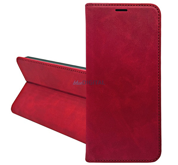 Tok álló, bőr hatású (FLIP, oldalra nyíló, asztali tartó, kártyazseb, prémium) PIROS Apple iPhone 17