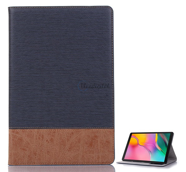 Tok álló, bőr hatású (aktív FLIP, oldalra nyíló, asztali tartó, textil minta) SZÜRKE Samsung Galaxy Tab A 10.1 WIFI (2019) SM-T510, Samsung Galaxy Tab A 10.1 LTE (2019) SM-T515