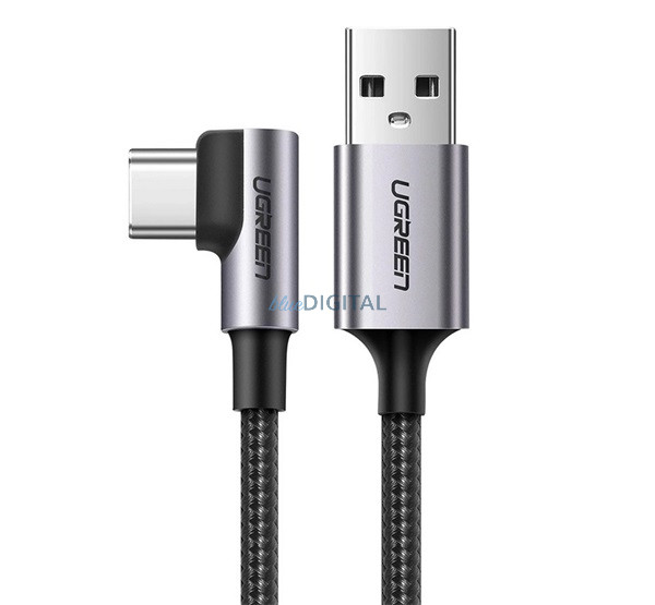 UGREEN US284 adatkábel (USB - Type-C, 15W, gyorstöltő 3.0, 300cm, 90 fokos, cipőfűző) FEKETE