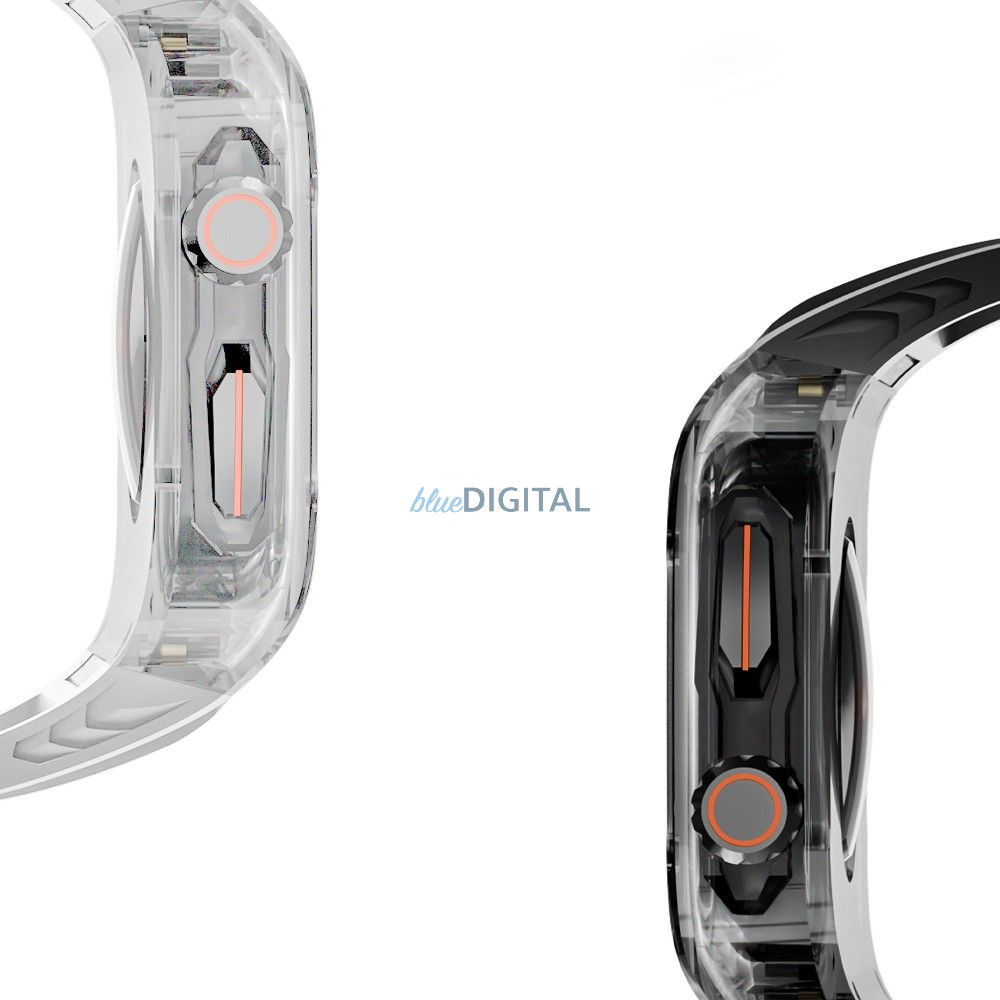 A szíj fluoros gumiból készült, amely tartós és ellenáll a deformációnak. Acélkapoccsal rendelkezik, amely megakadályozza a spontán kioldást. Megkönnyíti az állítást, így ideális bármilyen csuklóhoz, tökéletes a mindennapi használathoz és bármilyen sporthoz. A beépített tok védi az óra tokját. Nem korlátozza a képernyőhöz és a gombokhoz való hozzáférést.