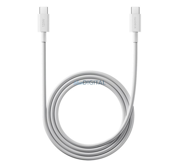 XIAOMI adatkábel (Type-C - Type-C, 6A, gyorstöltő, 100cm, cipőfűző) FEHÉR