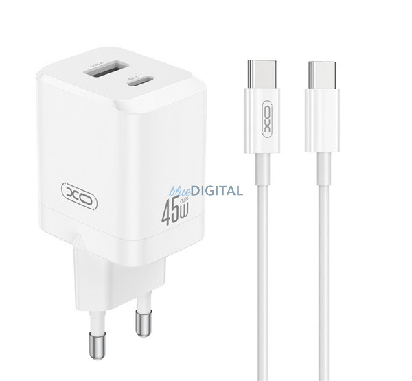 XO CE36 hálózati töltő USB+Type-C aljzat (45W, PD gyorstöltő 3.0 + Type-C kábel) FEHÉR